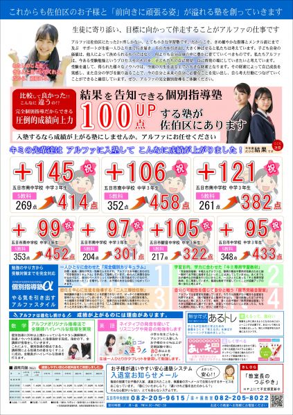 アルファは佐伯区に2教室しかない小さな学習塾ですが