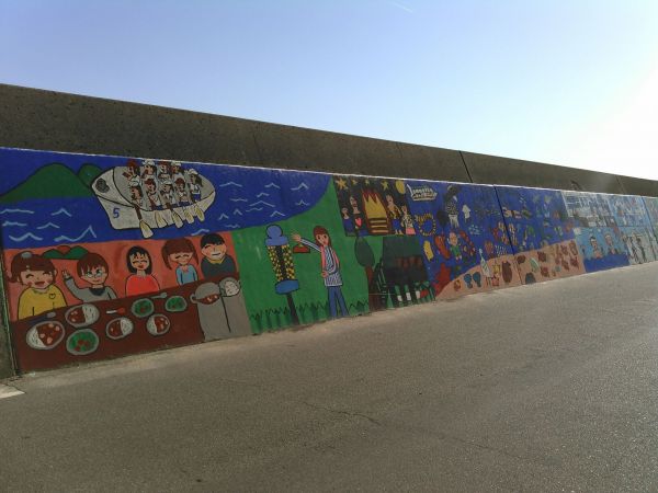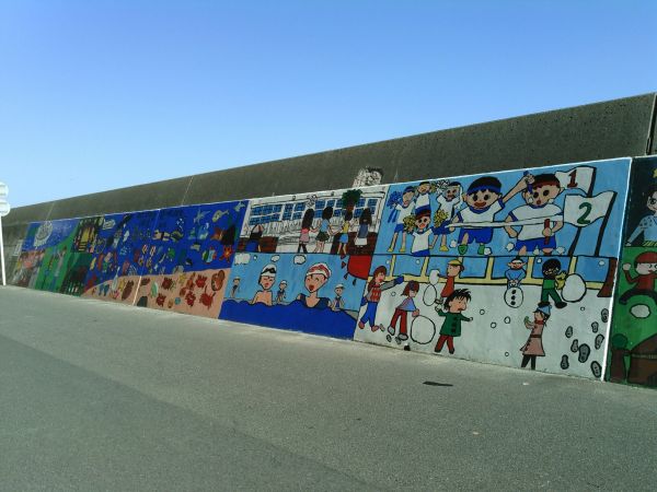 防波堤に記念の絵をペイントできるって、楽々園小学校限定なので